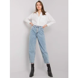 Modré džínsové nohavice pre mamičky s gombíkmi .