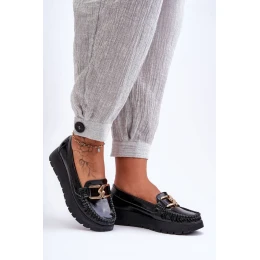 Tieto dámske mokasíny boli vyrobené z prírodnej kože s dôrazom na detail. Na prednej strane majú ozdobu. Pultík na päte bol u týchto topánok vystužený, čo umožní správnu stabilizáciu chodidla. Mokasíny sú usadené na jemnom kline a platforme. Pozrite si ďalšie modely dostupné na našich webových stránkach!