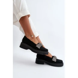 Tieto dámske mokasíny z prírodného semišu sú kombináciou elegancie a pohodlia. Prednú časť topánky zdobí vrúbkovaný remienok s malými zirkónmi. Tvarovaná stielka poskytuje pohodlie a jednoduché nosenie a prírodný semiš im dodáva exkluzívny vzhľad. Ide o ideálnu voľbu pre tých, ktorí ocenia štýl aj pohodlie.