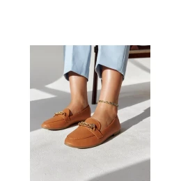 Mokasíny Scaletta v teplom odtieni hnedej farby zdobené retiazkou sú skvelou voľbou na letné dni. Ich plochá špička a moderný plastový dizajn nielenže vyzerajú štýlovo, ale poskytujú aj pohodlie pri nosení. Tieto moderné mokasíny sú nízke, ľahké a ľahko sa obúvajú, takže sú ideálne na prechádzku alebo stretnutie s priateľmi. Retiazka im navyše dodáva eleganciu a originalitu. Vonkajší materiál je vyrobený z ekokože a podrážka je z hnedého plastu. Zapínanie na šnúrku. Ideálne na leto!