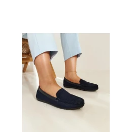 Tmavomodré textilné mokasíny Fiammetta sú ideálnou obuvou na teplé letné dni. Ich nízke, nazúvacie prevedenie je veľmi pohodlné a praktické. Sú vyrobené z tmavomodrého umelého materiálu a majú mandľovú špičku, ktorá im dodáva moderný a pokrokový charakter. Plochá podrážka zaručuje pohodlie počas celého dňa. Tieto trendy mokasíny budú skvelým doplnkom vášho letného šatníka. Vonkajší materiál je textilný, bez podšívky. Podrážka je vyrobená z čierneho umelého materiálu. Zapínanie je nazúvacie. Ideálne na leto!