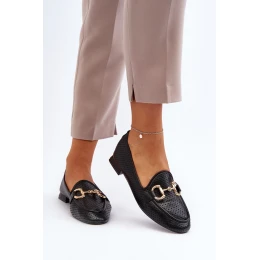 Mokasyny Damskie Na Płaskim Obcasie Z Ozdobą Czarne Iluvana