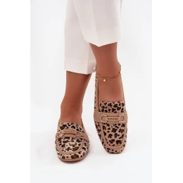 Mokasyny Loafersy Damskie Z Ozdobnym Elementem Panterka Beżowe Evelora