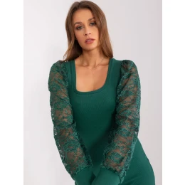 RUE PARIS Tmavozelené šaty s čipkou.