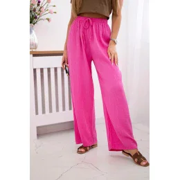 Mušelínové nohavice so širokými nohavicami ružovej farby