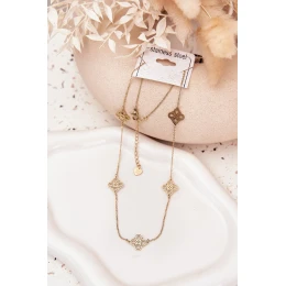 Dámský náhrdelník vyrobený z nerezové oceli je jemný a ženský doplněk, který dodá každé stylizaci šarm. Přívěsky ve tvaru květinek mu dodávají jemnost. Díky nastavitelné délce jej lze dokonale přizpůsobit k dekoltu. Odolný materiál zaručuje odolnost proti poškrábání a dlouhodobý lesk. Ideální na každý den i na výjimečné příležitosti.