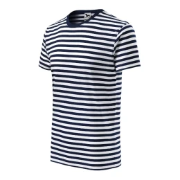 biele a tmavomodré pruhy strih s bočnými švami úzky výstrih z rebrového úpletu 1:1 s 5 % elastanu vnútorná časť výstrihu utesnená páskou z vrchného materiálu ramenné švy spevnené páskou