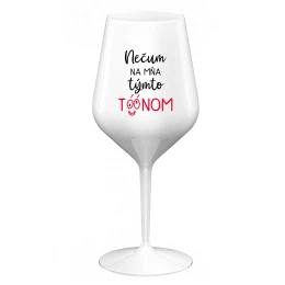 NEČUM NA MŇA TÝMTO TÓÓNOM - biely nerozbitný pohár na víno 470 ml