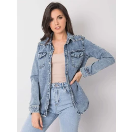 Modrá džínsová košeľa s cvočkami .