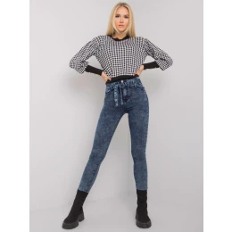 Modré úzke džínsy s opaskom .