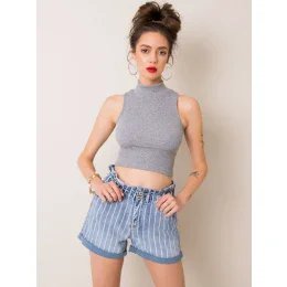 Modré pruhované džínsové šortky .