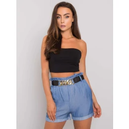 Modré šortky s rozšírenými nohavicami.
