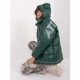 Tmavozelená prešívaná zimná bunda s kapucňou.