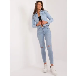 Dámske modré džínsy vo vypasovanom strihu.