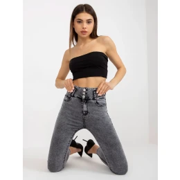 Tmavosivé dámske džínsy s vysokým pásom.