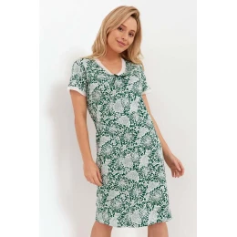 Dámska košeľa je elegantný a pohodlný kúsok oblečenia vyrobený z kvalitnej bavlny. Má krátke rukávy a véčkový výstrih, čo jej dodáva klasický a univerzálny charakter. Jedinečným prvkom je zdobenie goliera a manžiet jemnou sieťovinou, ktorá dodáva košeli jemnosť a rafinovanosť. Jej dĺžka siaha po kolená, takže je ideálna na každodenné nosenie aj na špeciálne príležitosti. Košeľa je vyrobená zo 100 % bavlny, zaručuje mäkkosť, odolnosť a pohodlie pri nosení a je skvelou voľbou pre ženy, ktoré si cenia kvalitu a štýl.