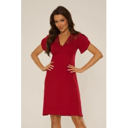 Nočná košeľa z kvalitnej a príjemnej viskózy. Okrúhly výstrih, dĺžka po kolená, krátke rukávy s čipkovým lemom. Veľmi pohodlný strih, mäkko priliehajúci k telu. Osloví ženy, ktoré milujú jemnosť a voľnosť.