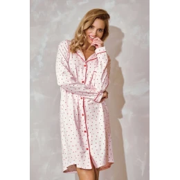 Nočná košeľa, ktorá v sebe spája eleganciu a pohodlie a je ideálna na každú noc. Je vyrobená z kvalitnej potlačenej tkaniny, pôsobí štýlovo a luxusne. Elegantné lemy (lemy) a zapínanie na gombíky jej dodávajú klasický šarm. Košeľa má praktické vrecko na úrovni hrudníka a polkruhový lem zaručuje voľnosť pohybu. Voľný, pohodlný strih a dlhé rukávy s manžetami zaručujú pohodlie. Je zakončená golierom, ktorý jej dodáva eleganciu. Poľský výrobok, zabalený v elegantnej taške, ideálny aj ako darček.