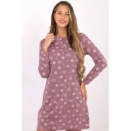Táto dámska nočná košeľa je dokonalou kombináciou pohodlia, ženského štýlu a ľahkej, romantickej estetiky. Je vyrobená z bavlny, ktorá poskytuje mäkkosť, priedušnosť a pohodlie pri celonočnom nosení. Model má okrúhly výstrih a dlhé rukávy, vďaka čomu je skvelou voľbou na každé ročné obdobie. Na prednej strane sú štyri gombíky, ktoré celému kúsku dodávajú jemnosť a uľahčujú obliekanie. Košeľu zdobí dominantná potlač kvetov a motýľov, ktorá jej dodáva jemný, ženský charakter. Dĺžka po kolená zaručuje voľnosť pohybu a pohodlie a zároveň zdôrazňuje klasický tvar. Je to skvelý dizajn pre ženy, ktoré ocenia prírodné materiály, pohodlie a ozdobné, romantické vzory.