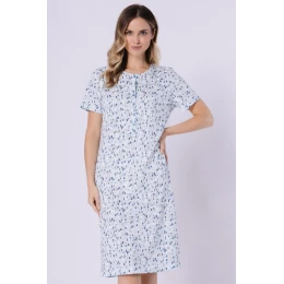 Táto nočná košeľa spája pohodlie s funkčným dizajnom. Má okrúhly výstrih a krátke rukávy, voľný a pohodlný strih zaručuje úplnú voľnosť pohybu. Je vyrobená z mäkkej a priedušnej tkaniny s potlačou, čo zaručuje pohodlné nosenie počas celej noci. Model vybavený gombíkmi uľahčuje obliekanie a vyzliekanie. Košeľa siaha nad kolená a celý kúsok je zabalený v praktickom fóliovom vrecúšku, vďaka čomu je skvelým darčekom.