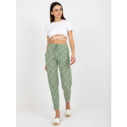 Svetlozelené letné nohavice z kvetinovej tkaniny PODĽA ÚROVNE .