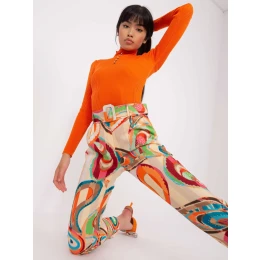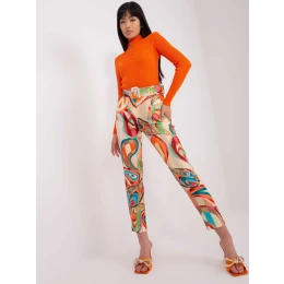 Dámske nohavice z béžovej tkaniny s potlačou.