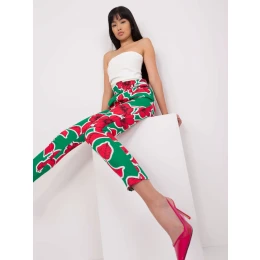 Zeleno-ružové nohavice s elegantnou potlačou.