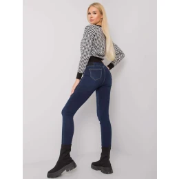 Tmavomodré džegíny s vysokým pásom.
