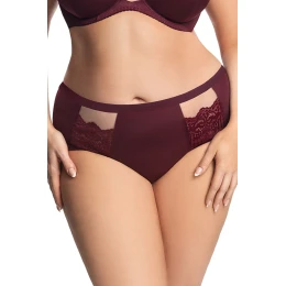 Pôsobivé nohavičky vyrobené z kombinácie dvoch látok, dobre zakryté a mierne priehľadné, pričom priehľadné časti sú umiestnené tak, aby nohy vyzerali o niečo dlhšie a zadoček tvarovaný a veľmi ženský. Elegantná bordová farba je ideálna pre každodennú bielizeň.