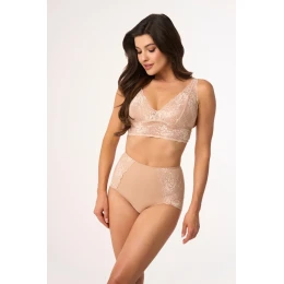 Modelovacie nohavičky BBL 204 v béžovej farbe sú skvelou voľbou pre každú ženu, ktorá si chce vytvarovať postavu na špeciálne príležitosti. Sú vyrobené z kvalitného úpletu, ktorý pozostáva z 80 % polyamidu a 20 % elastanu, a poskytujú vynikajúci komfort pri nosení. Prídavok elastanu navyše zabraňuje deformácii materiálu počas prania a používania. Tieto modelovacie nohavičky účinne korigujú brucho a boky, zjemňujú prirodzené krivky a zaisťujú pohodlie. Jemná kvetinová čipka im dodáva výnimočný šarm a eleganciu, vďaka čomu sú ideálnou voľbou na špeciálne príležitosti, keď sa chcete cítiť výnimočne a príťažlivo. Modelovacie nohavičky BBL 204 v béžovej farbe sú nielen funkčné, ale aj esteticky špičkové.