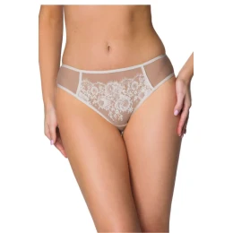 Nohavičky Frances v mliečnej béžovej farbe sú elegantným modelom, ktorý spája pohodlie s rafinovaným štýlom. Prednú časť nohavičiek zdobí jemné čipkové zdobenie, ktoré celku dodáva zmyselný pôvab a jemnosť. Nohavičky sú vyrobené z mäkkého materiálu príjemného na pokožku, dokonale priliehajú k telu a zaisťujú plné pohodlie pri celodennom nosení. Na zadnej strane sa nachádza ozdobné čipkové spracovanie, ktoré nohavičkám dodáva ženský charakter a necháva ich vyniknúť. Nohavičky Frances sú dokonalým doplnkom celej spodnej bielizne a ponúkajú eleganciu aj pohodlie.