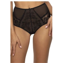 Dámske čierne nohavičky s vysokým pásom Lindsay F-0203/51 sú kombináciou čipky a tylu, čo im dodáva jedinečný a sofistikovaný vzhľad. Vysoký pás im dodáva eleganciu a pohodlie, zatiaľ čo čipkové detaily im dodávajú šmrnc. Na druhej strane tyl dokáže dodať ľahkosť a jemnosť. Je to skvelá voľba pre tých, ktorí v spodnej bielizni oceňujú pohodlie a eleganciu.