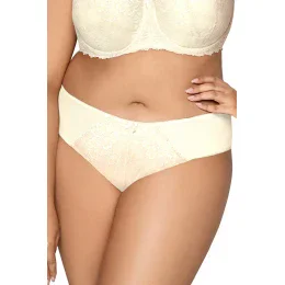 Fenomenálne a neuveriteľne zvodné nohavičky Carmela Big. Klasický strih, mierne zvýraznený pás a skvelá kombinácia výnimočných tkanín v krémovej farbe. Mäkká, ľahká elastická sieťovina na bokoch s čipkou v strednej časti nohavičiek. Vzdušné čipkované lemovanie jemne obopína zadoček a stehná a vytvára línie nôh. Celkovo vytvára sexy spodnú bielizeň, vďaka ktorej sa každá žena bude cítiť výnimočne.