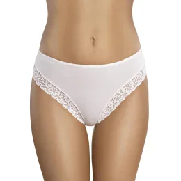 Nohavičky sú vyrobené z bavlny s elastanom, takže sú dokonale ploché. Zvláštny pôvab im dodáva ozdobná čipka s kvetinovým motívom. Zadná časť je hladká, rovná.