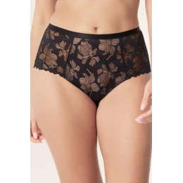 Tieto elegantné nohavičky s vysokým pásom sú dokonalou kombináciou pohodlia a ženskosti. Sú vyrobené z jemnej kvetinovej čipky podšitej mäkkou béžovou sieťovinou - krásne zvýrazňujú siluetu a zároveň poskytujú plné krytie a pohodlie pri nosení. Široké boky im dodávajú stabilitu a elegantný vzhľad a predná časť zakončená plochým elastickým pásom zaručuje dokonalé prispôsobenie. Zadná časť zakončená čipkou dodáva ľahkosť a zmyselnosť. tieto jedinečné nohavičky spájajú nadčasový štýl s funkčnosťou - ideálne na každodenné nosenie aj na špeciálne príležitosti.