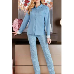 Dámske pyžamo z bavlny. Tričko s dlhým rukávom, dlhé nohavice. Horný otvor, vrecko na boku, rukávy zdobené čipkou a jemnou čipkou.K dispozícii v dvoch farbách. Pyžamo zabalené v krabici. Ideálne na darčeky.