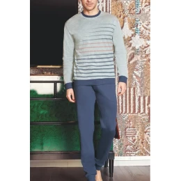 Pánske pyžamo z vysokokvalitnej bavlny. Uniforma s dlhými rukávmi a dlhými nohavicami, zakončená rebrovaným lemom.