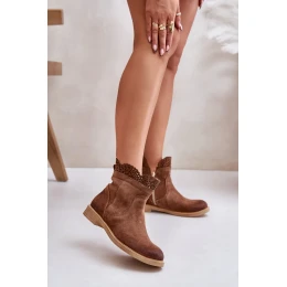 Tieto krásne dámske čižmy boli vyrobené z kvalitného prírodného semišu. Stoja na plochom podpätku, vďaka ktorému sú mimoriadne pohodlné a stabilné. Zapínajú sa na zips na boku zvršku. Tento model má na vrchnej časti zvršku šnurovací prvok. Zaoblená špička. Čižmy, ktoré musíte mať!