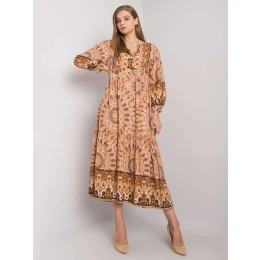 OCH BELLA Béžové voľné vzorované šaty.