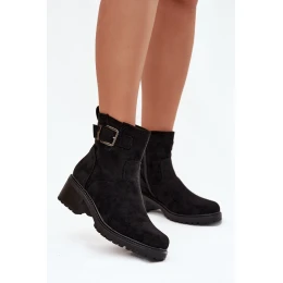 Ocieplane Botki Damskie Na Niskim Obcasie Klocku Z Klamrą Czarne Helvina