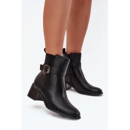 Ocieplane Botki Damskie Na Obcasie Z Paskiem I Klamrą Czarne Sylira