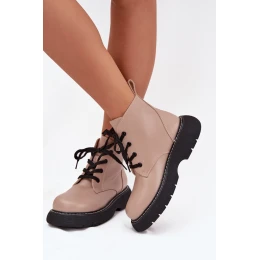 Ocieplane Botki Damskie Na Platformie Sznurowane Ciemnobeżowe Harmine