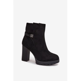 Ocieplane Botki Damskie Na Słupku Z Ozdobnym Paskiem Czarne Zayna