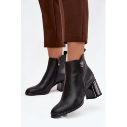 Botki damskie z naturalnej skóry to klasyczna i elegancka propozycja na chłodniejsze dni. Dzięki ociepleniu kocem obuwniczym zapewniają komfort i ciepło, a zamek boczny ułatwia zakładanie i zdejmowanie. Model posiada zaokrąglone noski oraz ozdobny detal z boku cholewki, dodający całości subtelnego uroku. To uniwersalne botki, które sprawdzą się zarówno w codziennych, jak i bardziej formalnych stylizacjach.