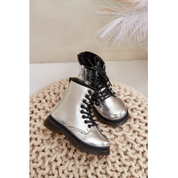 Ocieplane Botki Dziewczęce Lakierowane Na Zamek Srebrne Novita