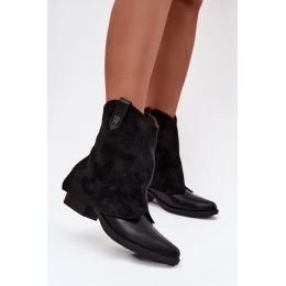 Ocieplane Botki Kowbojki Na Obcasie Czarne Sylvette