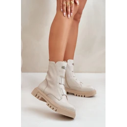 Ocieplane Botki Workery Damskie Na Zamek Eko Skórzane Jasnobeżowe Mailyra