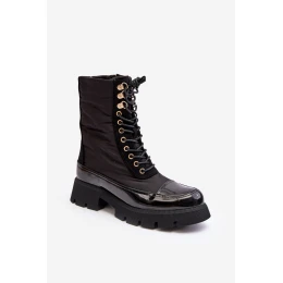 Ocieplane Botki Workery Na Płaskim Obcasie Czarne Saranema