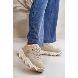 Ocieplane Buty Sportowe Damskie Sznurowane Na Platformie Beżowe Bialoa