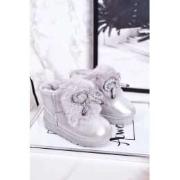 Ocieplane Dziecięce Botki Śniegowce Z Futerkiem Srebrne JellyBeans